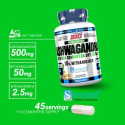 Su fórmula utiliza Sensoril®, la patente líder en el mercado, con una alta concentración de activos que multiplican sus efectos adaptógenos: mejora la resistencia al estrés, ayuda a mantener la energía diaria y contribuye al equilibrio emocional y cognitivo. Una sola cápsula vegana aporta 500 mg de extracto de máxima calidad, ideal para quienes buscan bienestar general y rendimiento mental y físico.