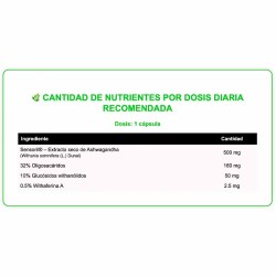 Cantidad por cápsula: 500 mg de extracto seco de Withania Somnifera (Sensoril®)
