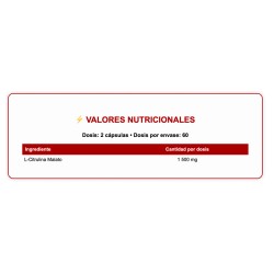 Cada porción de 2 cápsulas aporta 1500 mg de L-Citrulina Malato, en cápsulas vegetales aptas para dietas vegetarianas.