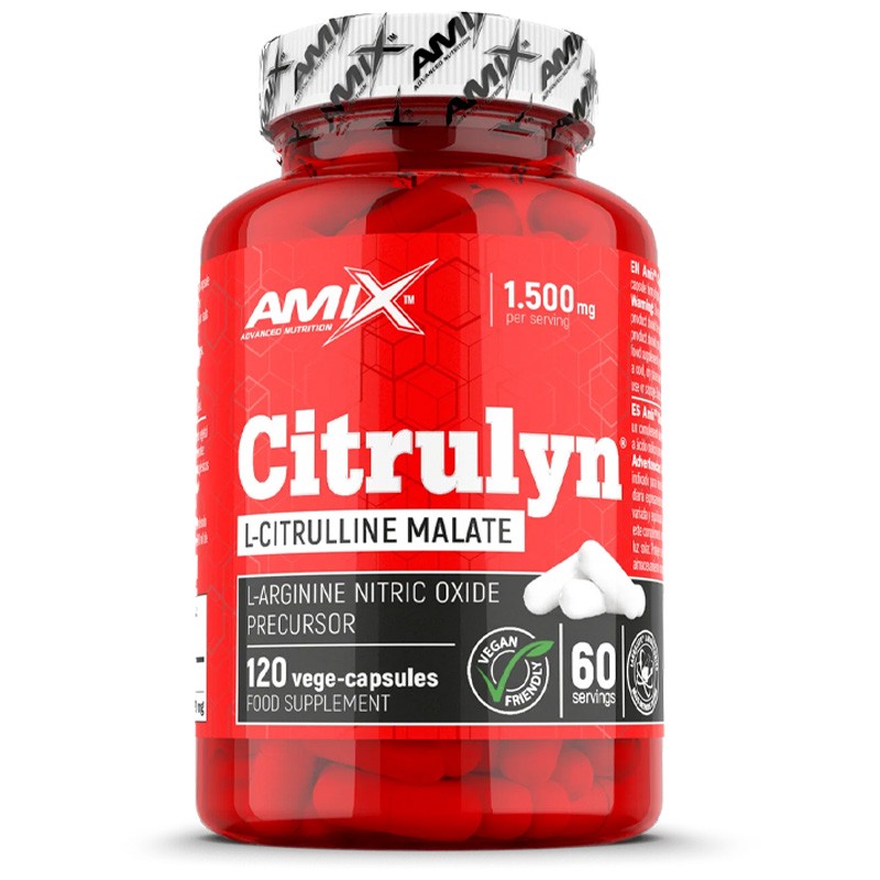 Amix™ Citrulyn® es un complemento alimenticio en cápsulas elaborado con L-Citrulina Malato, una combinación altamente valorada por deportistas por su papel en la producción de óxido nítrico, el rendimiento muscular y la mejora del flujo sanguíneo durante el entrenamiento.