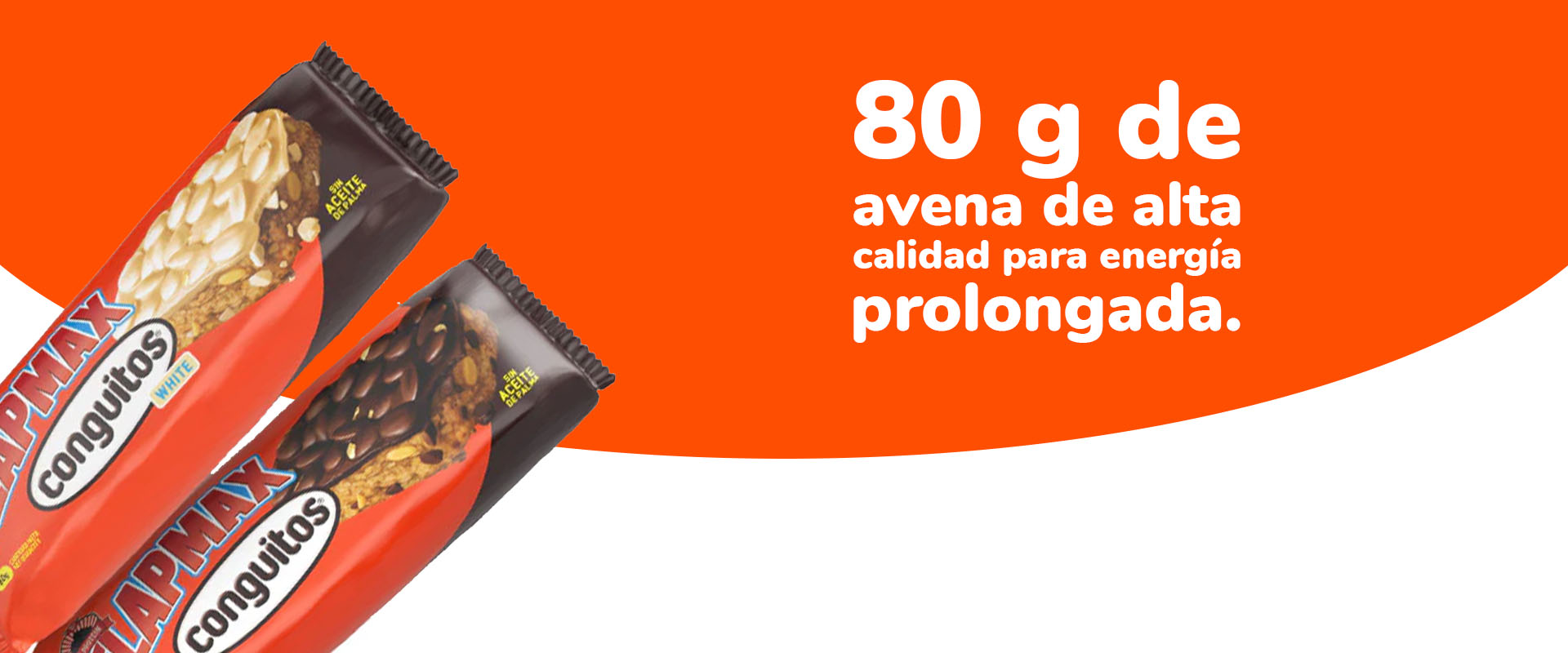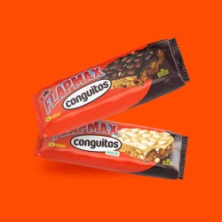 Flapmax Conguitos® es la barrita de avena energética que combina avena Max Protein® de alta calidad, cacahuetes tostados al estilo Conguitos® y una irresistible capa de chocolate negro o blanco. Una explosión de sabor y energía ideal para esos días intensos donde necesitas una carga potente de carbohidratos para rendir al máximo.