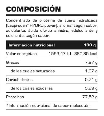 La proteína Hydro Concentrate de suero hidrolizado con máxima capacidad y velocidad de absorción con BCAA 2:1:1. Fácil digestión y agradable sabor.