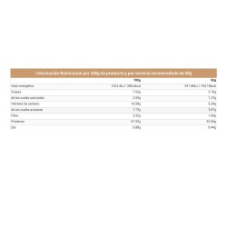 Información Nutricional por 100g de producto y por servicio recomendado (50g)