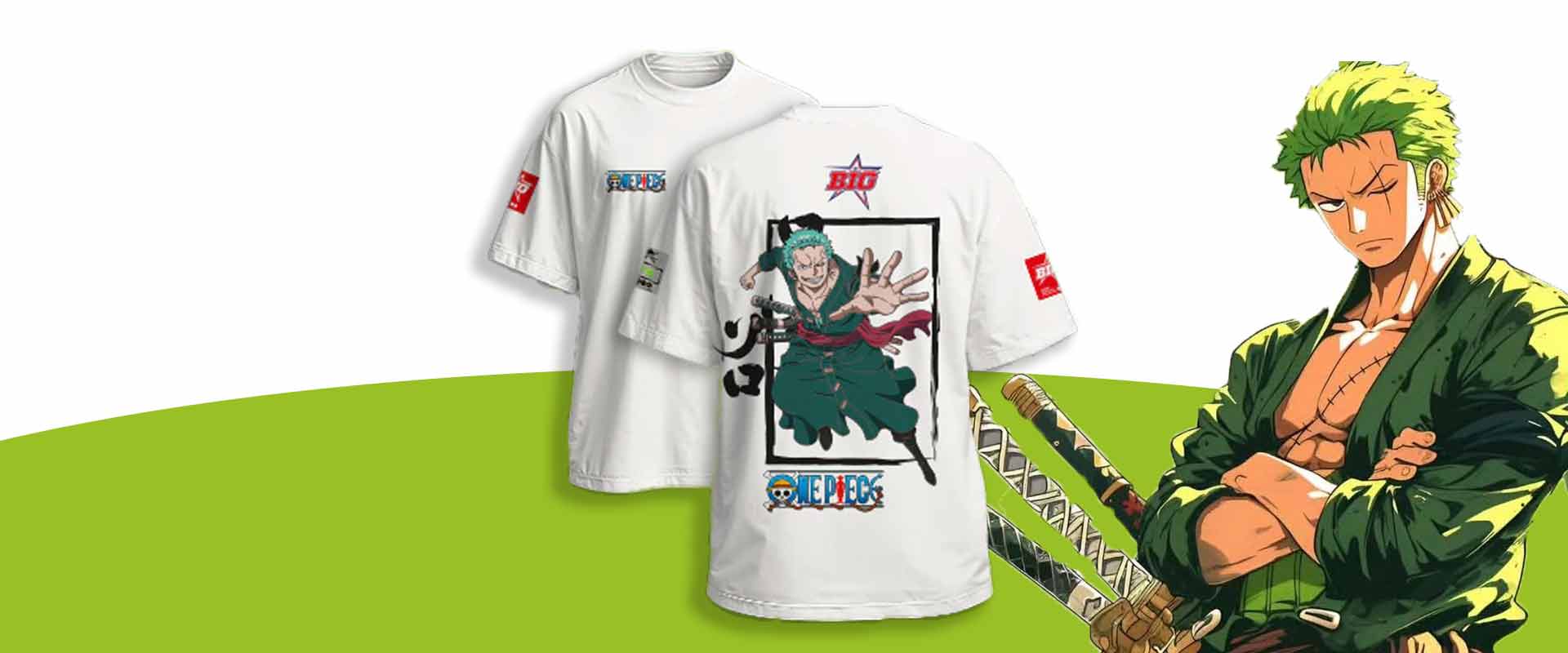 Diseñada con algodón 100% premium y un fit oversized inspirado en el espíritu guerrero de Zoro.