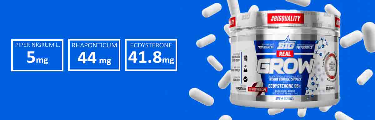 REAL GROW de la gama BIGscience es una fórmula exclusiva desarrollada a partir del legendario “secreto ruso” utilizado por atletas olímpicos de élite durante décadas. Esta avanzada combinación de Rhaponticum carthamoides (fuente natural de ecdisteronas) y Pimienta negra (Piper nigrum) actúa de forma sinérgica para estimular la tonificación muscular, mejorar el rendimiento físico y favorecer la composición corporal.