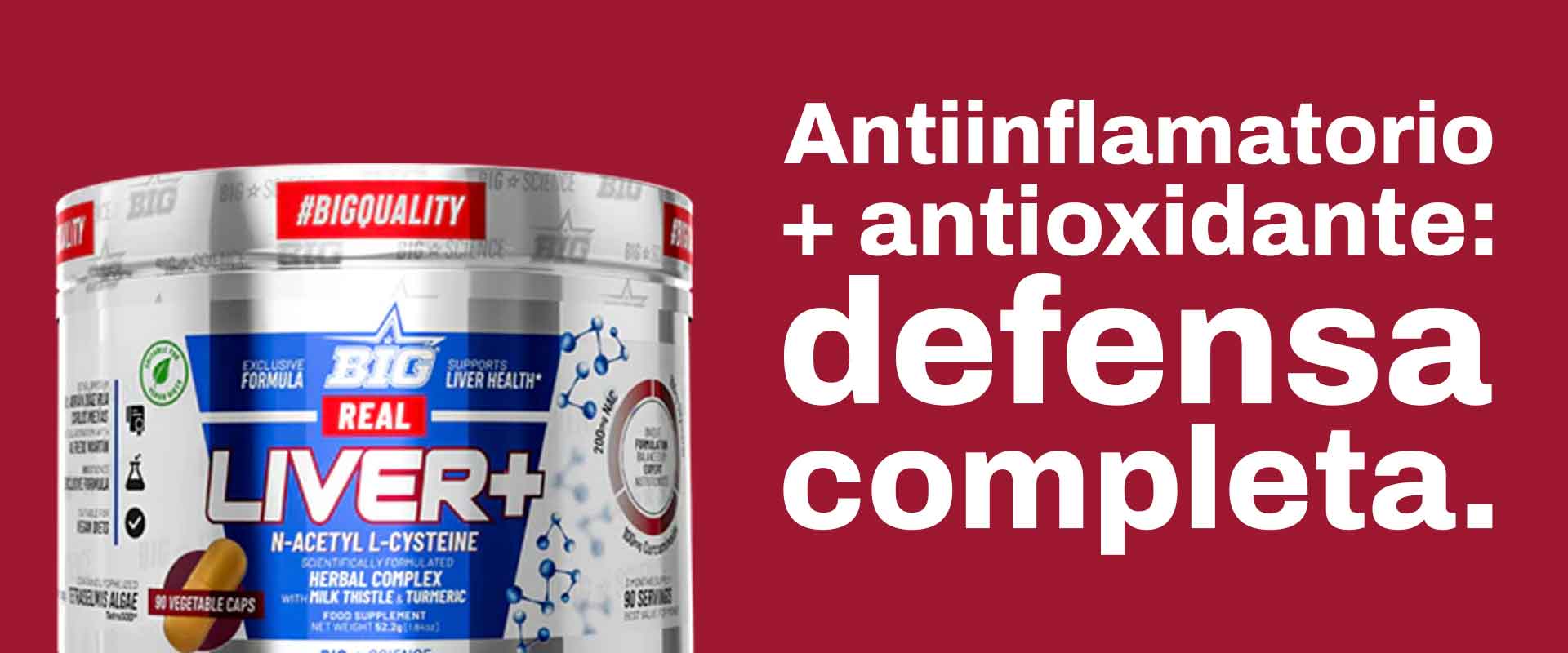 REAL LIVER+ de BIGscience® es una fórmula premium diseñada para proteger, regenerar y optimizar la función hepática gracias a su combinación de N-Acetilcisteína (NAC), extractos vegetales de alta concentración y la innovadora patente TetraSOD®.