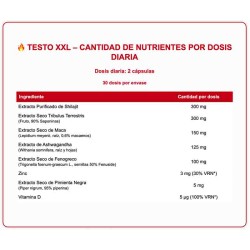 TESTO XXL de BIG® es un potente precursor natural de la testosterona diseñado para elevar tu rendimiento físico, tu energía diaria y tu capacidad de recuperación. Su fórmula combina patentes de máxima eficacia como PrimaVie® (shilajit), Testofen® (fenogreco), Sensoril® (ashwagandha) y BioPerine® (pimienta negra), logrando un efecto integral sobre fuerza, vitalidad y composición corporal.