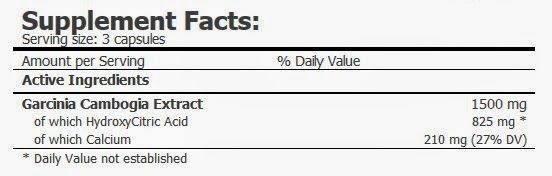 Informação nutricional por dose de HCA - 100 Cápsulas Amix: