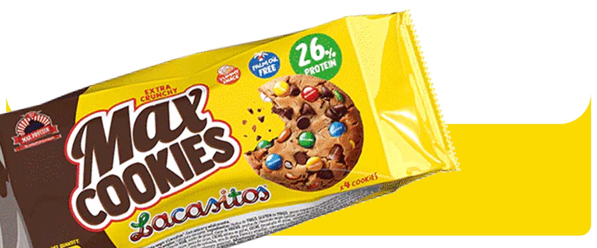 As Max Cookies Lacasitos® da Max Protein® são o equilíbrio perfeito entre prazer e nutrição. Umas cookies estilo americano, macias por dentro, ligeiramente crocantes por fora, carregadas de sabor e com um impressionante 26% de proteína.